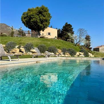 La piscina di nuova realizzazione, collegata alla casa attraverso la nuova sistemazione del paesaggio